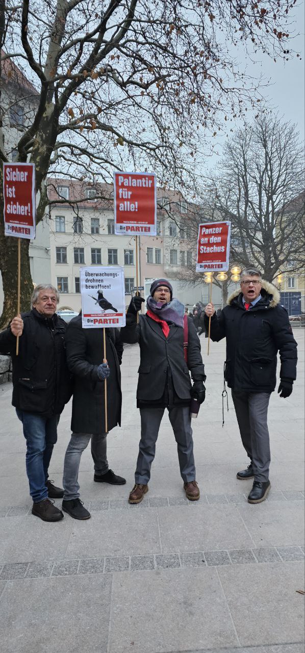 Unter diesem ehrgeizigen Anspruch versammelten sich am Samstag zahlreiche Demonstrierende, um für ein höheres Sicherheitsniveau zu kämpfen. Die Forderungen waren klar, kompromisslos und – wie es sich für echte Münchner*innen gehört – maßvoll überzogen: Panzer in Wohngebieten, Messerverbot in der Mensa, bewaffnete Überwachungsdrohnen und Truppenübungsplätze für unsere Kleinsten (ab 12 Jahren). Sicherheit kennt schließlich keine Kompromisse. Nur Eskalationsstufen.